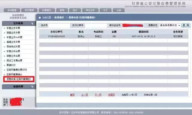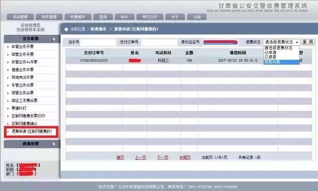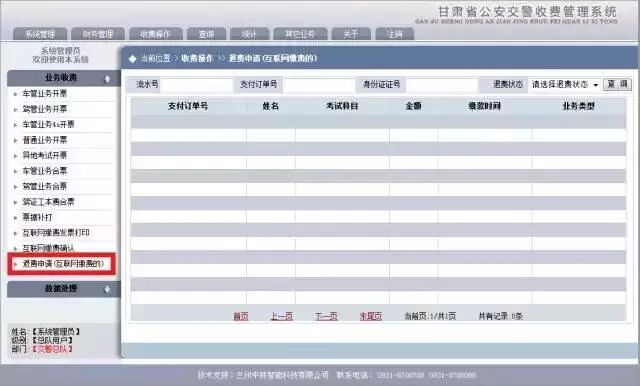 1.登录“甘肃省公安交警收费管理系统”,(请联系管理员授权)。公安网用户访问旧网址访问收费系统,vpn网用户收费地址为:http://10.25.255.131:9080/trasf